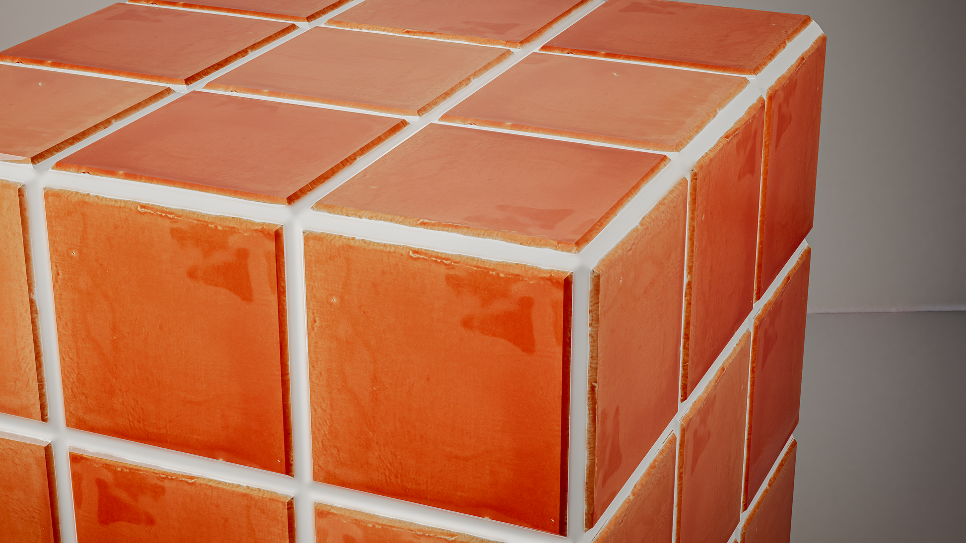 The Fresh Peach cube can be used as a side table or as a stool. It is covered with ceramic tiles that are handmade and painted with luminous, deep, glossy and reflective glaze. Because each tile is hand-painted, your furniture is a unique piece of collection.