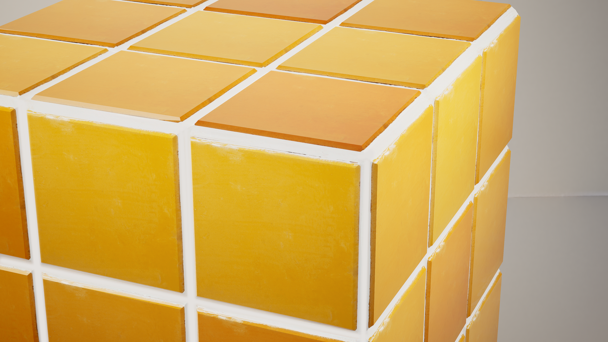 The Yellow Yolk cube can be used as a side table or as a stool. It is covered with ceramic tiles that are handmade and painted with luminous, deep, glossy and reflective glaze. Because each tile is hand-painted, your furniture is a unique piece of collection.